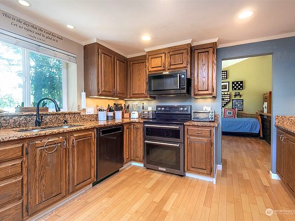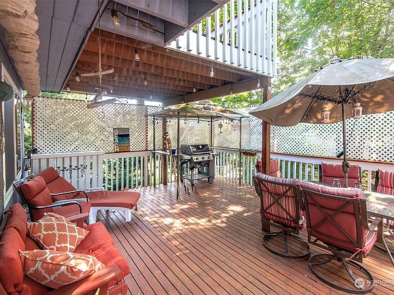 Location, location, location! Spacious Martha Lake home on private wooded 1/3 acre lot, close to I-5 and I-405. Short walks to both Martha Lake beach & Airport Park. Open floor plan w/vaulted ceilings in living/dining rooms. Large kitchen with eating bar, open great room w/dining area and family room connected to large deck w/hot tub overlooking large, fenced backyard. Beautiful staircase in entry leads up to 4 BRs, 2 baths, & laundry. 3-car garage & huge attic, provide plenty of storage. Major interior remodel in 2011 added custom fireplace mantles w/built-in under-hearth on lower level. Whether entertaining or enjoying a quiet evening with your clan playing safely on the 120 ft. driveway, you will love calling this neighborhood home.