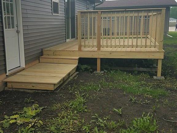 This newly renovated home is a must see! Located close to the downtown area and park, this home features a new asphalt roof, siding, windows, and gutters. The exterior also has new steps on the front and a large deck on the back. This home has a single attached garage as well. The interior features a nice open floor plan with new flooring throughout. This 3 bedroom, 1 bath home is newly renovated with a nice modern feel. To finish it up, it also has a new heating and cooling system.