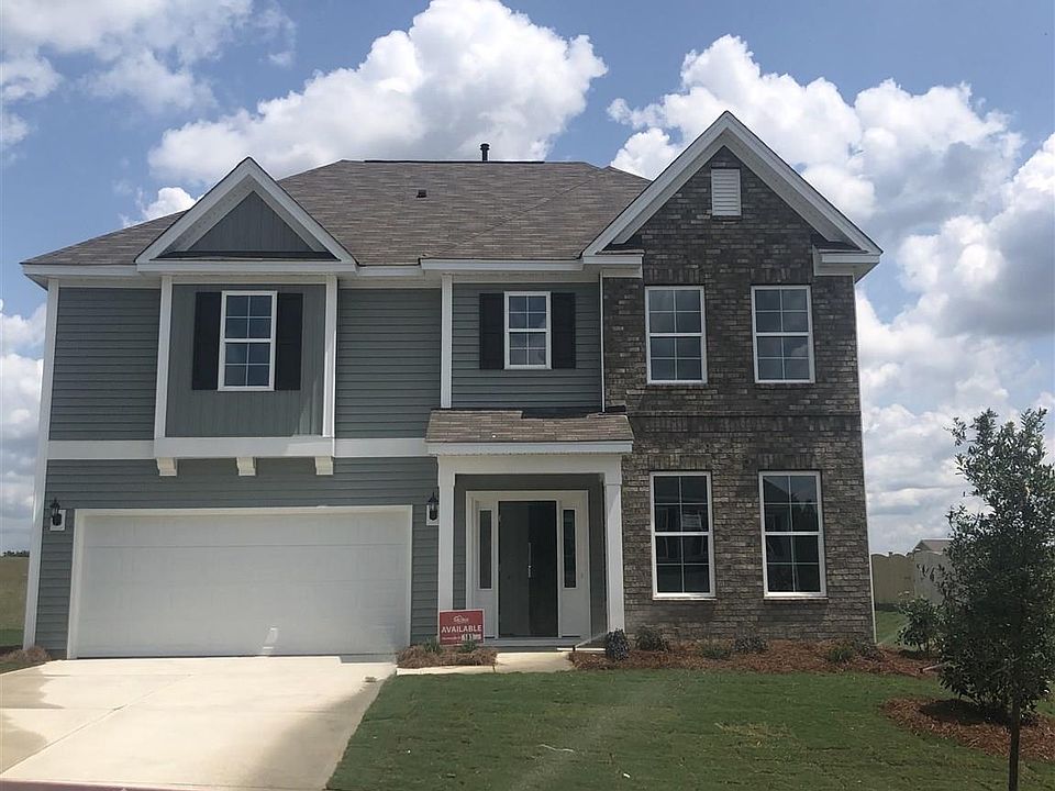 As you enter this home beautiful luxury vinyl floors flow throughout the first floor. A formal dining room with a coffered ceiling and chandelier make for a clean and sophisticated entrance while still being functional. The butler's pantry with upgraded cabinets and granite counter tops takes you from the dining room you into the spacious kitchen with a large granite island, white cabinets, and plenty of cabinet space. This open concept floor plan flows from the kitchen into the family room equipped with a bluetooth music port and two speakers and a gas fireplace. Upstairs the large master suite features a his and her closet, separate tub and shower in the master bathroom, and large bedroom. Three additional bedrooms and another bathroom with double sinks complete this home upstairs. This lot is fully irrigated and built with energy efficiency in mind!