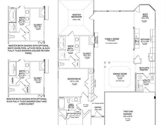 The Manhattan Expanded plan is an elegant, open ranch with great visual appeal. Ceilings are over ten feet in the entry and family room, and over nine feet in the dining room, kitchen, breakfast area, and utility room. A gas stacked stone highlights the family room, and triple windows with transoms overlook the rear yard.The master bedroom includes a deep tray ceiling detail, and bedroom #3 has vaulted ceilings and a plant shelf above the closet. The master suite has a very spacious closet, a separate oversized tiled walk in shower and linen storage in the master bath. The dining room is defined by columns and a dropped tray ceiling, but remains otherwise open to the other living areas. A butler's pantry off the kitchen and formal dining room adds a nice luxury touch. This home also has a 2 ft garage extension as well as and additional attic storage package.