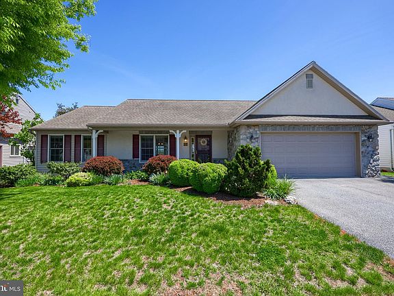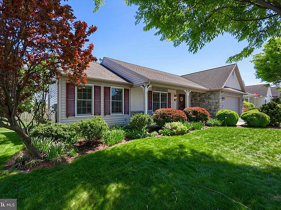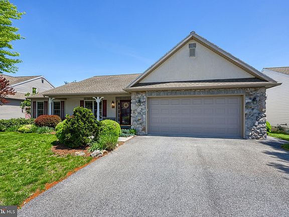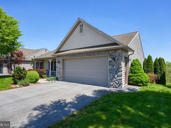 4 bed/3 bath home in a 55+ community. Relaxing country views on the outside and open floor plan living on the inside. Living room has high ceilings and a gas fireplace and is open to the kitchen and dining area. Enjoy the sunroom which opens to a deck overlooking the back yard and farmland views. One floor living offers 3 bedrooms with large closets and 2 full bathrooms. The lower level is filled with daylight and you can walk out to a patio. It offers large recreation space, workshop area, and a 4th bedroom and full bathroom. 2-car garage. Walkable community with access to the Community Center. See listing documents for more community details. (land is leased)