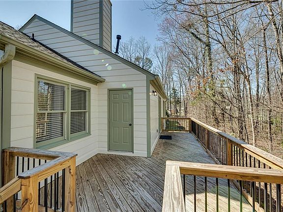 Special ONE LEVEL LIVING! OPEN HOUSE SUNDAY, MARCH 13: 2-4pm. Covered front porch. Decompress with quiet, WOODED CUL-DE-SAC SETTING just minutes from downtown Jamestown w/restaurants, boutique shopping, grocery, gas, pharmacy. LARGE PRIMARY BEDROOM w/plantation shutters and attached full bathroom. Living room with beautiful real, STONE FIREPLACE, mantel, BUILT-IN CABEINT and shelving. OFFICE could be a third bedroom or dining. Hall Full Bathroom with tub. Abundant NATURAL LIGHT and counter space in kitchen, beautiful bay window. Laundry area. All kitchen APPLIANCES and stack W/DRYER CONVEY. Completely painted interior, carpet just cleaned, FRESHLY PAINTED exterior, UPDATED LIGHTING throughout, newer architectural roof via HOA, deck rebuilt. WELL MAINTAINED. Being sold "as-is." Welcome Home!