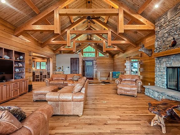 Truly one of a kind Western Red Cedar log home with breathtaking views of the White River. Over 24 acres of natural beauty.