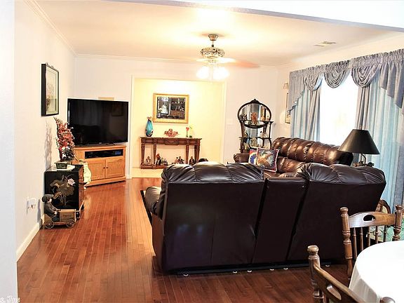 Beautiful home inside city limits adjacent to Elementary School. 4 1/2 minute from I-30. Features 3/4 inch Maple hardwood and Travertine Tile flooring, crown molding, new heating/air and wiring. New large shop with separate meter and 200 AMP breaker. Zoned I-2 / Light Industrial, so you can open a business from home or the large insulated shop with heat and air. Hook ups for RV on property and covered parking. Plenty of parking, small orchard, deck, gazebo, additional 16x20 shed and small storage shed.
