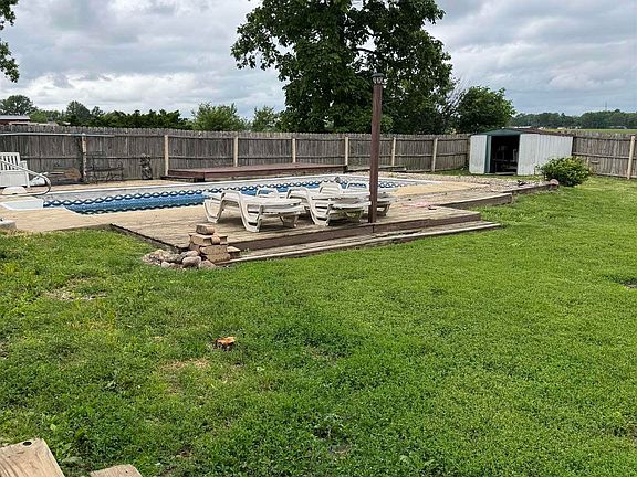 Welcome to this 3 bed 2 bath home with lots of great features. This home does have a wide open feel at front of house. Kitchen, Big Dining Room with real Fireplace, and Big Living room all open to each other. All 3 Bedrooms are at other end of house. Master bed boast a big on Suite Bath room 16.5x8. Home also Boasts a privacy fenced back yard with good entertainment areas Around the In ground pool!! Also has a nice detached garage and storage shed for pool stuff, and seperate shed for mowers or??? Owner did do full New roof System on home & years ago, all new plumbing and all new well equipment.Within past 5 years they did complete remodel on both bathrooms, And in kitchen new butcher block countertops, new sink and faucet, and all lighting including recessed lighting throughout and appliances that stay with sale. Also seller is open about helping with New Pool liner needed but pool just opened to show correct operations