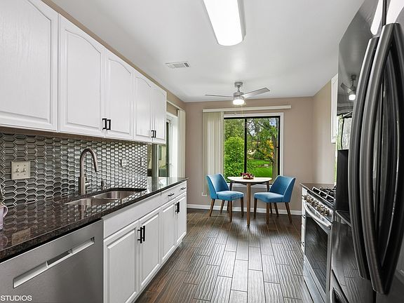 Sophisticated elegance. This 2 bedroom, 2 bath condo is a stunner. The attention to detail in every room does not go unnoticed, from the primary bathroom tile to the epoxy floor in the garage to the gorgeous kitchen backsplash and counter top. No need for any updating as this is totally move-in ready. Enjoy grilling on the balcony out back while admiring the backyard and mature trees. Hurry in as this one won't last!