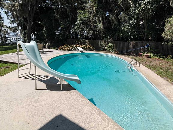 Gorgeous St. Johns riverfront, 3.5 acres. Own your own piece of riverfront paradise! This property has great investor potential for possible sub divide, build a new home, or fully renovate the existing home. Property boasts Century old oak trees and a mature citrus grove. Perfect for boating, fishing, and enjoying the evening sunsets. Overlook the river and pool area from your spacious family room with picture windows. Extra large kitchen with island, dining room with river view