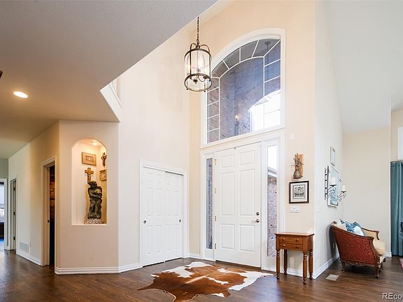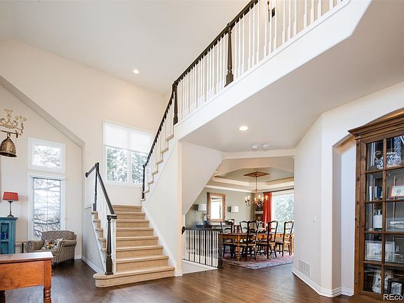 A stunning remodeled residence in the Glen Oaks Neighborhood of Castle Pines. Surrounded by native trees and mature landscape, the home’s interior mimics nature’s beauty with soaring ceilings, unending light and natural finishes. Beyond the grand foyer and front sitting room is an elegant formal dining room with seamless flow into a kitchen that is a chef's dream with a breakfast nook, expansive center island and walk-in pantry. From the kitchen is direct access to an outdoor retreat complete with a gas fireplace, two heaters overhead, saltwater hot tub and spacious yard beyond. Two-story windows cascade high above the stylishly outfitted living room with bar and beverage cooler for entertaining guests, and an adjacent dedicated office space, enclosed by French doors, offers a quiet retreat for productivity. Near the front entry is a convenient half-bath and a laundry/mudroom equipped with a utility sink, ample storage and connection to the oversized three-car garage enhanced by epoxy flooring for a polished finish. A spacious primary suite on the second-floor combines luxury with comfort, featuring a double-sided fireplace, an opulent 5-piece bath and a huge walk-in closet. There are three generously sized secondary bedrooms, one with an ensuite and the others share an adjoining full-bath. The finished basement extends the living space with a family room designed for relaxation, including a wet bar and concealed beverage fridge; plus, a fitness room and ¾-bath with a steam shower. The basement also includes a fifth bedroom, another office and a fantastic storage room, catering to all lifestyle needs. Conveniently located between Castle Rock and the Denver Tech Center/Lone Tree and within close proximity to highly regarded schools and exceptional amenities.