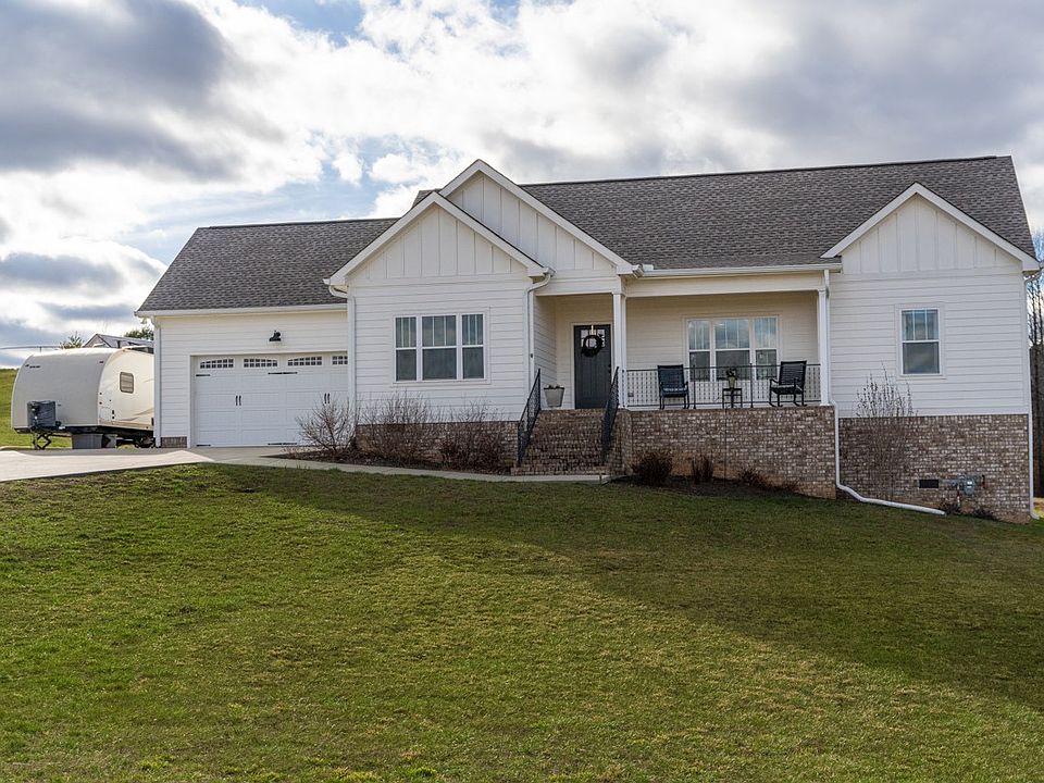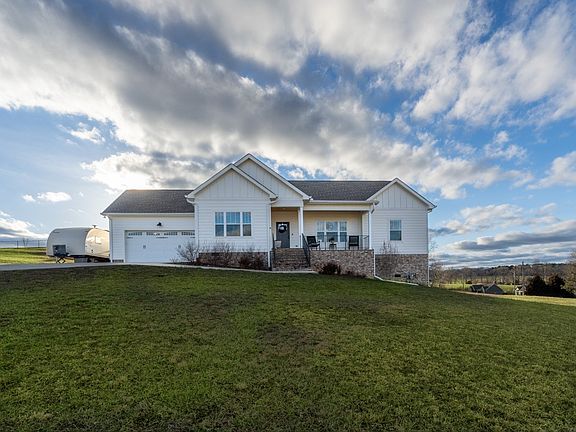 ALL ONE LEVEL 4-year-old home with luxury finishes. Open Concept. Hardwood Flooring. Tile Flooring. Cathedral Ceiling/9 ft. Ceilings. Stainless Steel Appliances. Quartz Countertops. Custom Cabinets. Hardiplank. Covered Front Porch. Deck. Beautiful country views on a 1.49-acre lot. Refrigerator remains. Additional RV Parking and power and storage shed/workshop with electricity.