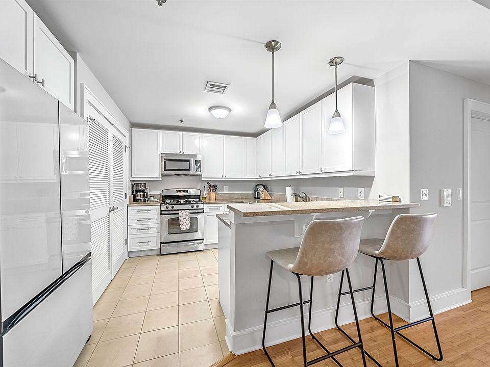Welcome to this beautifully maintained 800 sq ft home in the heart of Hoboken that checks all the boxes.. The home features an engineered flooring throughout, stylish kitchen with white cabinetry, granite countertops, stainless steel appliances, with a brand new Samsung Bespoke Fridge w/ autofill picher. Kitchen also adds a convenient breakfast bar for more seating and dining options.
