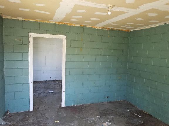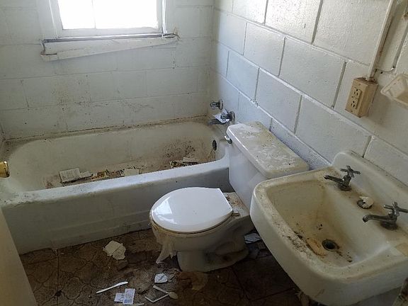 Concrete block duplex. One side occupied by a long term tenant and the other is vacant and needs repairs.