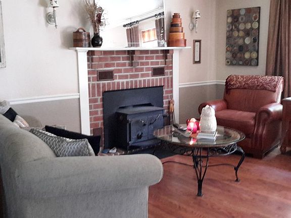 - Fireplace features: wood stove