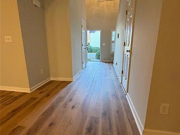 Move in ready townhome featuring new LVP floors throughout (no carpet!), fresh paint, and an open concept main level. High ceilings, a two story foyer, and a single car garage complete the main floor. The updated kitchen includes plenty of cabinet space and a large pantry perfect for everyday living and entertaining. Upstairs offers two spacious bedrooms, each with its own private bathroom and generous closet space. The primary suite includes an updated bath, and the laundry room with full size hookups is conveniently located upstairs for easy access. Enjoy peaceful wooded views from your private back patio, ideally situated at the end of the street within the community. Rent includes access to all amenities pool, tennis, lawn care, and trash service. Just one mile from I-575 and The Outlet Shoppes at Atlanta, and minutes from downtown Woodstock's restaurants, parks, and shopping.