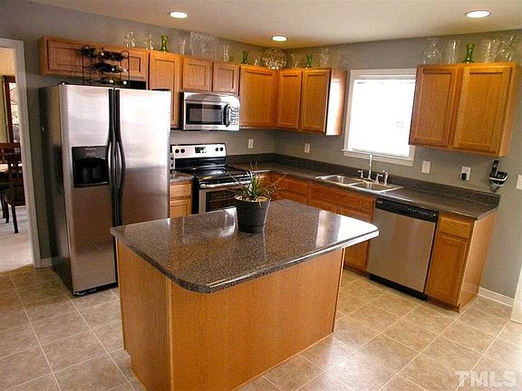 Stunning transitional home with bright & open floor plan. Huge LR & DR flow into cook's kitchen w/ new stainless steel appliances & island. Family room w/gas log fireplace. 1st floor office with lots of natural light! Huge master suite has tray ceiling, walk-in closet & bath with garden tub, dual vanity & separate shower. Large landing for desk or bookcase. Bonus room/media room/fitness room - you decide. Spacious bedrooms! Flat yard for easy maintenance & play has extended deck. Easy commute to Raleigh!