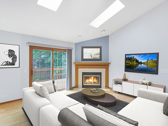 Welcome to this beautifully laid out 2-bedroom, 2-bath tri-level townhome, perfectly situated in a prime Elgin location just off Randall Road! Step inside to a warm and inviting foyer with convenient access to the attached garage, along with pathways to both the main and lower living areas. Up on the main level, you'll find an open and airy living room drenched in natural light, featuring soaring vaulted ceilings, hardwood flooring, a cozy gas fireplace, and a ceiling fan for year-round comfort. A glass sliding door leads out to a private balcony-ideal for morning coffee or relaxing evenings. The living space flows seamlessly into the eat-in kitchen, complete with all stainless steel appliances and ample cabinetry for all your culinary needs. Upstairs is a versatile loft that offers additional space. The generously sized primary suite includes plush carpeting, a walk-in closet, and a private bath with double sinks, a separate shower, and a relaxing whirlpool tub. Head down to the lower level for even more living space in the finished recreation room, which opens to the patio through a second set of glass sliders. A second bedroom with dedicated closet space, a full hall bath with a shower, a laundry/utility room, and a walk-in closet in the hallway, complete the lower level. This home combines comfort and convenience with easy access to shopping, dining, urgent care, medical practices, and major roadways - truly a must-see!