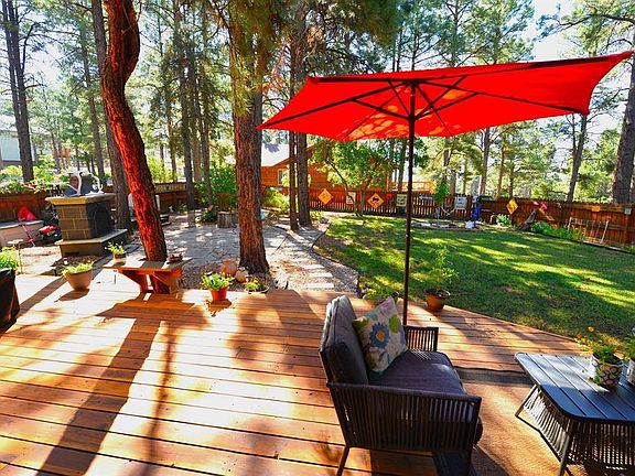 This charming clean one-owner is tucked away on a nicely wooded lot in desirable Twincreek Village. The cedar-sided home has been meticulously maintained and offers a great 3 bedroom / 2 bath layout and one incredible backyard for entertaining. Enter from the covered front porch into the welcoming living area with clay-tile and tasteful laminate flooring, high vaulted ceilings with T&G pine, and built-in bookshelves on both sides of the natural gas fireplace. The living area opens into the spacious dining room and kitchen featuring granite counter-tops, ample prep space and storage, under cabinet lighting, an island, and additional bar seating. The primary bedroom is on a private wing of the home and features an ensuite bathroom with tub-shower and king-sized bed. The 2 guestrooms are sizeable and located on the other side of the house separated by a full-bath with handicap accessible walk-in shower. Slide the doors open from the dining room and step outside onto the large 900+ sq. ft. redwood deck and embrace the awesomeness of this back-yard oasis. The cedar-plank fencing protects the entire back yard provides great privacy and enjoyment for 4-legged friends. Idyllic landscaping and flagstone established fire-pit area to enjoy BBQs with guests under the mature ponderosa pines! In addition to the attached 2 car garage is a permitted RV parking pad. All interior and exterior furnishings are negotiable. Uptown is 5 minutes away and its amenities include restaurants, shops, Pagosa Medical Center, City Market, Stevens Field Airport and Pagosa Springs Golf Club. Historic downtown Pagosa is roughly 10 minutes to the east and offers exciting festivals, hot springs, lively breweries, dining and shopping. For the outdoor and sports enthusiast, Pagosa offers epic skiing at Wolf Creek Ski Area, flyfishing and whitewater rafting on the San Juan River and hot air ballooning. This one is a beauty and won't last long. Call to schedule your private showing today.