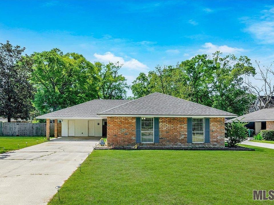 Welcome to this adorable home located in the heart of Denham Springs! As you enter, you will be greeted by an open and airy floor plan that is perfect for entertaining guests or relaxing with your family. The kitchen/dining area features ceramic tile flooring, an abundance of cabinets, granite countertops, stainless appliances, a double wall oven and an eat-at granite island, providing ample space for cooking and dining. The living room boasts a gas log fireplace with a brick surround and hearth, creating a cozy atmosphere on chilly nights. Laminate flooring and canned lighting add to the charm and ambiance of this space. The master bedroom offers new laminate flooring, crown molding, two separate closets, and an ensuite bath, providing a private retreat at the end of the day. The master bath suite features a large soaking tub/shower combo and a double granite vanity, adding a touch of luxury to your routine. The other two bedrooms are equally spacious and offer new laminate flooring and a full bath, perfect for family or guests. Home also has a new security system. Outside, this home sits on a nice wood fenced lot with low maintenance landscaping, offering privacy and serenity. An oversized covered patio is perfect for enjoying the outdoors in any weather, while a 15x20 workshop provides additional storage space or a workspace for your hobbies. This home is ideally located close to antique shops, fine dining, Bass Pro Shops, and Juban Road Crossing, providing convenient access to all the amenities Denham Springs has to offer. Don't miss out on the opportunity to make this charming home your own! Flood insurance under $800 per year!! Roof was replaced in 2020!