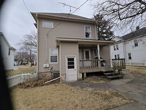 Stately 2 story home currently used as a single family. This property has the potential of a 2 flat providing, income for someone who wants to live on the 1st or 2nd floor. Some of the features include all-natural woodwork, pocket doors, volume ceilings, stain glass windows, updated wrap around front porch, beautiful ornate open stairway. Additional stairway to second floor with outside entrance. The second floor includes 3 bedrooms, walk in closet, kitchen, full bath, plus a lg 6x16' hallway. There are 2 GFA furnaces (1 updated), 2 water heaters, updated electrical & roof. There is inside and outside entrances to the basement. For your mechanic in the family there is an oversized 2-car detached garage w/ 2 openers and controls complete with a service pit and an additional storage/shop area, parking pad with alley access. White picket fencing around the yard.