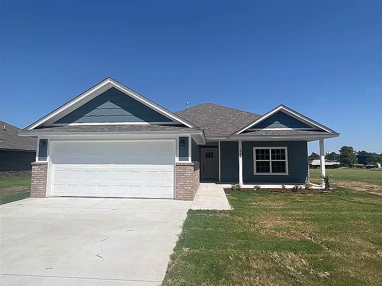 Take a look at this beautiful brand-new home in Blackwell! Conveniently located to restaurants, shopping and a nearby park. This home is 3 bedroom, 2 bathroom, 2 car garage with electric opener. They have LVP throughout the home with the exception of carpet in the bedrooms. The kitchen and bathroom have granite countertops. The kitchen/living area is an open concept floor plan; and washer and dryer hook ups. All kitchen appliances are provided including fridge, oven/stove, microwave, and dishwasher. Separate laundry room with washer and dryer hooks ups only The unfenced backyard is large. The primary bedroom features large bathroom and closet. This unit has energy efficient windows, HVAC units and insulation to keep your utility bills LOW. Tenant pays all utilities and land care. No smoking, all outside cigarette butts must be picked up. Rent is due the 1st.