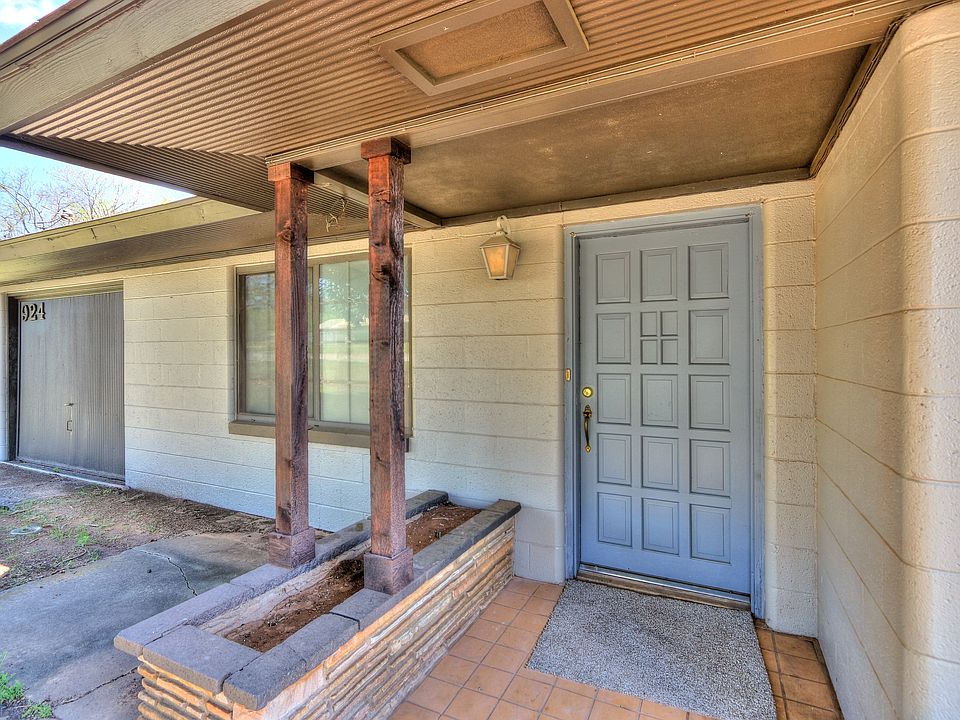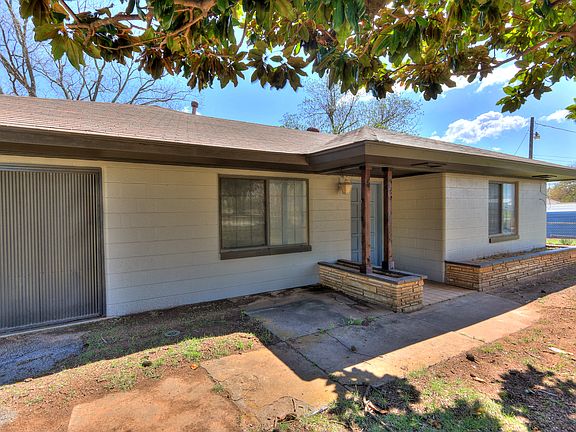This recently updated Mid Century modern style home offers 3 bed, 1 bath, two living areas and sits on over 1 acre in town. Brand new floors and paint throughout the inside and out! Beautiful mature trees, two driveways that are both gated, covered parking, storage building w/ power and concrete in ground storm shelter. The home is Built on a concrete foundation w/ exterior walls being cinder block and cement. Its is very strong and really well insulated! It is on city water but also has a well for watering yard etc. Call Justin today for a showing! 405-761-2006