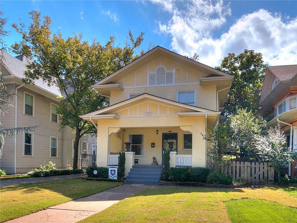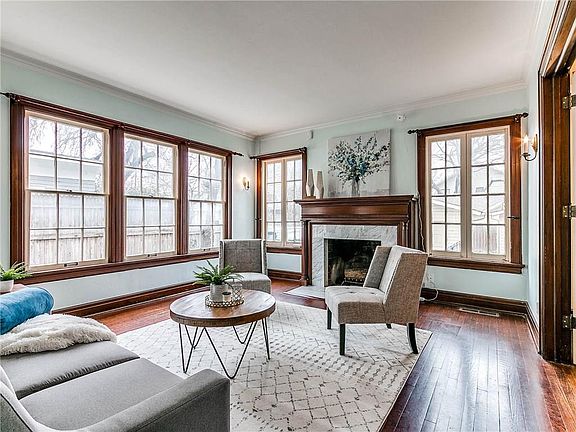 Loaded with architectural elements, this beauty boasts original fireplace tile, leaded glass front door, soaring ceilings, arched accents, & hardwood floors. Easy entertaining is guaranteed with a colossal living room with open formal dining. Kitchen offers stainless steel appliances, wine cooler, striking granite & custom cabinetry. In grand style, the study has ample room for office tasks as well as arts and crafts activities. Surrounded by picture windows, the master bedroom is a true retreat. Relax in the en-suite pajama lounge or transform it into an additional bedroom or nursery. Master closet provides endless storage for the clothes horse! Enormous master bath sports a whirlpool tub and separate shower. Private water closet as well! For refined tastes, venture to the basement and experience a unique bar & gaming room with central heat and air. Highlights Include: 2 custom murphy beds, zoned HVAC, upstairs laundry, electric gate, newly re-built garage. Bonus:1 bd Apt with HVAC!