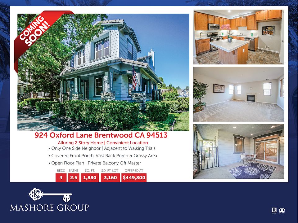 This home welcomes you with an inviting covered front porch, continuing into the back that offers a grassy area and vast covered patio. Upon entering this home, you are greeted with a formal living room, formal dining room and access to the spacious back patio! The kitchen and family room combo offers stainless steel appliances, center island and access to the laundry room and garage. Upstairs offers 3 bedrooms, a full bathroom and a master suite. One bedroom has a walk in closet! This master suite offers a vast walk in closet, spa-like master bathroom and access to your own private balcony. This home only has one side neighbor. Adjacent to a walking trail that leads you to the park. This home is conveniently located and within walking distance to schools, parks, and shopping centers. Just minutes from Downtown Brentwood and freeway access.