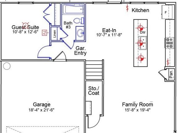This two-story home has 5 bedrooms and 3 bathrooms. Immediately inside the entryway, the family room leads into the kitchen and eating area. There is a guest suite on the main level. Upstairs are three spare bedrooms, two with walk-in closets, that share a full bathroom and a convenient laundry room. The primary bedroom connects to a primary bathroom and walk-in linen and clothes closets. There is an open loft space upstairs.