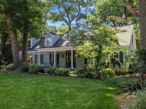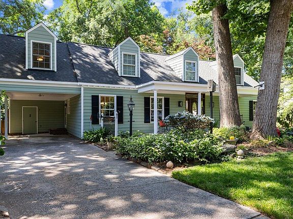 Welcome to the highly sought-after Midtown neighborhood of Quail Hollow! This charming Cape Cod-style home offers exceptional curb appeal, featuring a spacious covered front porch that invites relaxation. Inside, timeless hardwood flooring—present even beneath some of the carpets—adds warmth and character. The home offers a gracious dining room with custom wainscoting, perfect for entertaining, conveniently located adjacent to the updated eat-in kitchen. The cozy family room features a wood-burning fireplace and built-in shelving, creating an inviting space to unwind. 2 Primary bedrooms - 1 on each level. There is an additional bedroom/flex room/office on the first floor which provides comfort and accessibility. Laundry room conveniently located on the 1st fl. Designed for convenience, the home includes both front and back staircases, offering a flexible layout. Oversized windows fill each room with abundant natural light, enhancing the home's inviting atmosphere. Step onto the tranquil screened porch to take in breathtaking views of the beautifully landscaped fenced in backyard, overlooking a stunning koi pond. Additional amenities include a one-car carport, an enclosed storage space off of carport and a walk-in crawl space with higher than most ceilings. Thoughtful updates throughout the home include: Roof (2018), HVAC (2nd floor, 2018), AC (1st floor, 2022), Screened Porch (screens 2024), Gas Hot Water Heater (2021), Updated Kitchen, Updated 2nd fl Primary Bathroom & Some Interior Painting. Nestled in a prime location, Quail Hollow offers easy access to Quail Corners for shopping and dining, North Hills for entertainment, and Eastgate Park, which features a community center, pond, playgrounds, tennis courts, basketball courts, and scenic walking trails. Residents may also have the opportunity to join the Quail Hollow Swim & Tennis Club (subject to availability). With downtown Raleigh just a 10-minute drive away, this home seamlessly blends comfort, modern updates, and unparalleled convenience. Don't miss the chance to make this incredible property yours!