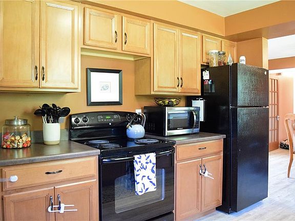 Welcome Home to 924 Pinecrest --- this is the shiny new penny! Be the first to walk through this 3 bedroom ranch that was remodeled top to bottom! As you approach, you'll notice the excellent curb appeal with newer vinyl siding, exterior doors, garage door, and tidy landscaping. A welcoming front porch leads you inside to the great room with large picture window; neutral walls are accented in white trim and newer carpet. From here, the great room opens up to the eat-in kitchen as luxury vinyl flooring runs underfoot. Built-in cabinets under the window give this home extra character. Then get ready to fall in love with the kitchen! Newer slow-close cabinets are sharply accented with contemporary countertops and black appliances. Off the kitchen, there is a door to the spacious, wooded backyard, and also access to the extra deep, 2 car-garage. The full basement hosts an updated bathroom with newer vanity and walk-in tiled shower; laundry room with glassblock windows is nearby as well. Through a french door off the dining area, the main bath has newer flooring, vanity, tiled shower with tub, and much more! Further down the hall awaits the 3 bedrooms with newer carpet. Other updates include roof, furnace, A/C, luxury vinyl flooring, garage door, paint, exterior doors, interior doors, faux wood blinds, lighting, paint, hardware, electric, and more! No stone was left unturned!