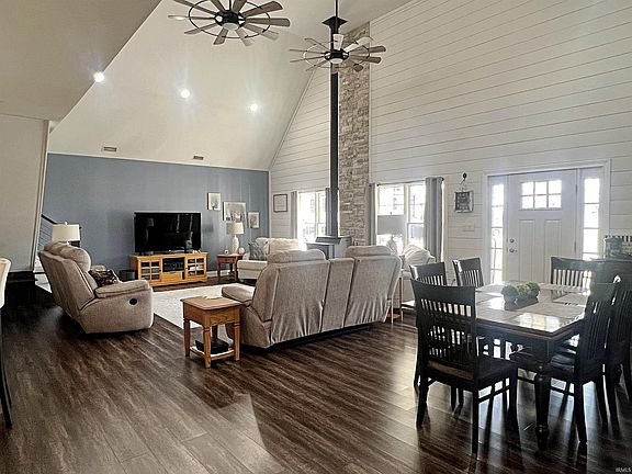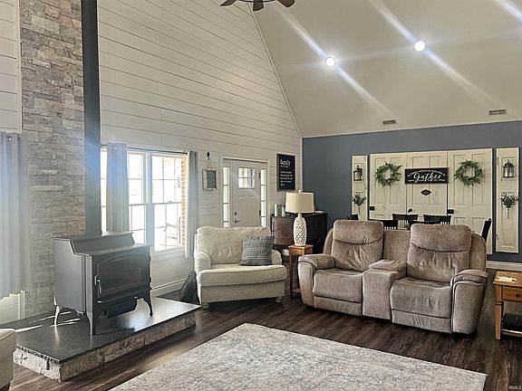 This beautifully remodeled 3 bedroom, 2 bath home on 1.28 acres +/- offers stylish living space with a perfect blend of modern updates and rustic charm. The cathedral ceilings and open-concept design create a spacious and inviting atmosphere, while the wood-burning stove adds warmth and character. Enjoy updated flooring, lighting, and fixtures throughout, along with eye-catching barn-style doors for a unique touch. The bonus room upstairs offers endless possibilities, home office, playroom, or extra living space. With a 2.5-car attached garage and a location just outside city limits, this must-see property provides the perfect balance of privacy and convenience.