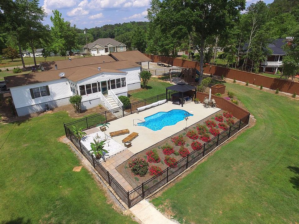 This updated 3/2 waterfront home offers one of the most spectacular panoramic views on Lake Sinclair. The home was recently remodeled with LVP flooring, an entire kitchen redo with custom cabinets, granite, SS appliances, undermount sink and a 5 x 8 island. Both bathrooms were renovated as well. Other indoor features include a wood burning fireplace, large pantry, mudroom and a 12 x 22 sunroom that allows you to enjoy those jaw dropping views year round. The outdoor areas are what take this property to another level. The property boundaries are fully fenced with a wood privacy fence plus a separate aluminum security fence surrounding your heated inground saltwater pool, steel gazebo and hot tub. 140 ft concrete seawall, single stall boat shelter w 8000 lb lift, private concrete boat ramp, firepit, horseshoe pit. Two detached 2-car garages: one 24'x32' and one 24'x36' with 10' 6" doors to accommodate an RV. Both garages have 220v electric service. Paved circular drive. County water plus a private well. New 1500 gal septic tank.