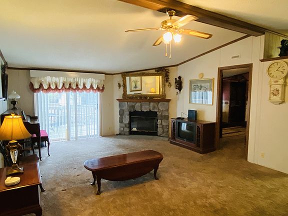 One owner split floor plan filled with lots of love. Offering spacious design, huge eat-in kitchen with bar, pantry and tons of cabinetry. Great room with gas fireplace. Trane HVAC. Two storage buildings. Indoor plantation shutter window coverings. Newer refrigerator, new carpet. Great home for the money. Home has recently been certified by structural engineer per FHA guidelines. Letter is attached to listing.