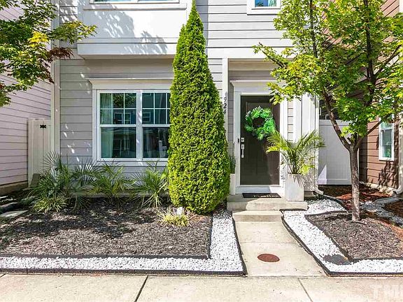 Gorgeous home with many upgrades in popular Villages of Apex! Open flr plan boasts high end tile flooring, granite, SS range & DW. Spacious screen porch w/fireplace & fenced-in yard offer escape to a private oasis! Backyard features maintenance free, pet friendly "Forever Lawn". Covered breezeway to insulated 2 car garage. 3rd flr bonus w/extra storage on either end,1/2 bath can be converted to full. Enjoy pool/minigym; walk to neighborhood brewery, dog park/fields/ shops & eateries in downtown Apex!