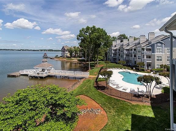 This condo has sunset, long range, year-round views in Davidson Landing. 3rd-floor location in the Southpoint complex of Davidson Landing. The building sits close to the shoreline for unparalleled views of Lake Norman. No highway noise from the back side/balcony deck. This unit has 2 bedrooms and 2 full bathrooms. Third-floor location has vaulted ceilings in the great room. Newly updated flooring in the main level space and newer stain-resistant carpeting in the bedrooms. Drop zone wall feature in foyer hall. Granite counters in kitchen along with brand new stainless steel appliances. New lifetime warrantied sliding glass door to the balcony porch. Updated master bath. Neutral paint throughout. Professionally installed TV wall mounts convey. Amenities include the lake, pool, day dock, tennis, walking/fitness trails, leased boatslips. Exterior of condo newly sided and painted. Parking lot and landscaping upgrade/improvements will be underway soon.