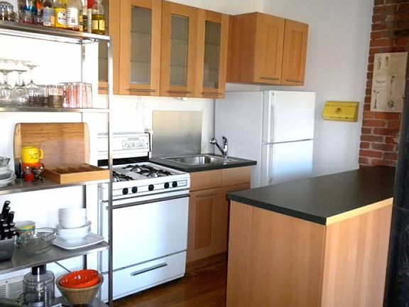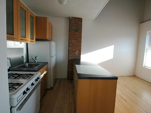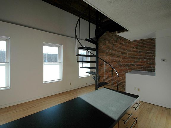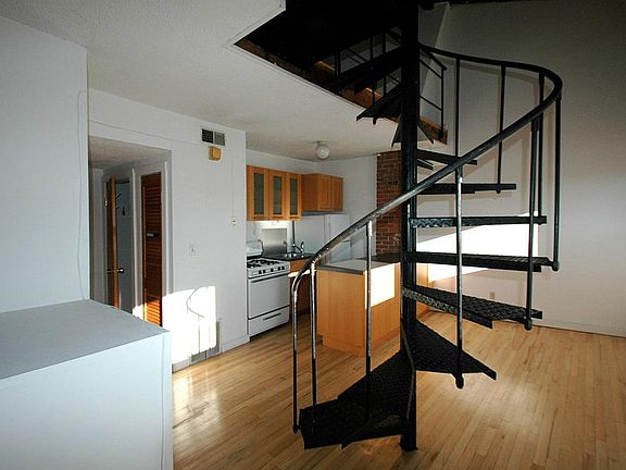 Spiral staircase to loft with bedroom and bath. Architect-restored building. Living/kitchen/dining all one room. Cathedral ceiling in living area. Skylight in bedroom. Bright and sunny, nicely lanscaped courtyard. 2 Months Security. Available NOW . One Year lease