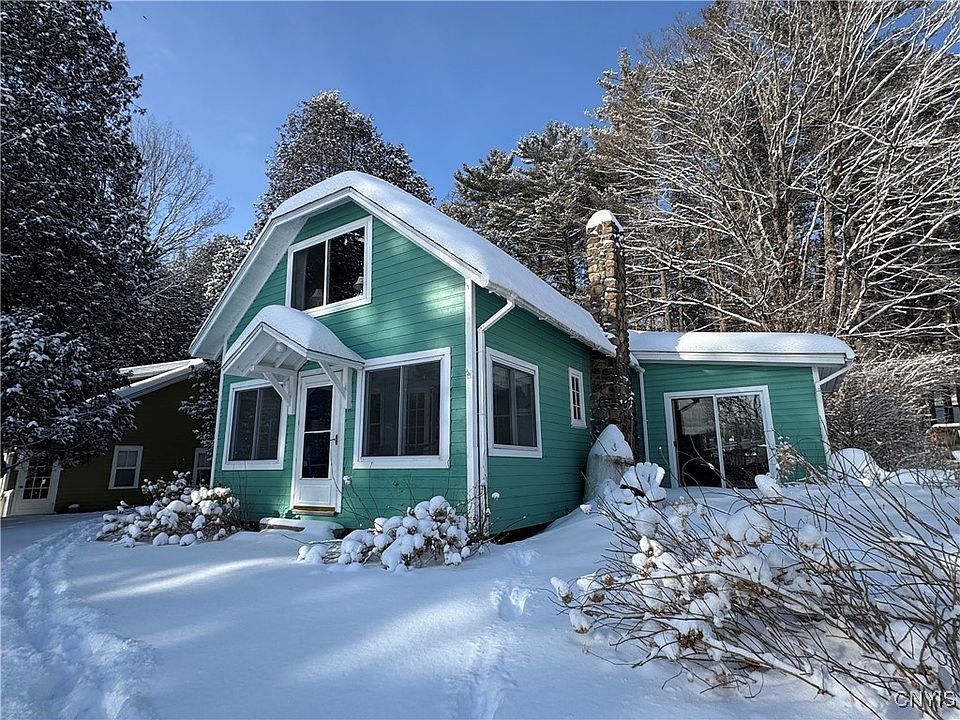 This is a charming 3 bedroom seasonal cottage with an ADK feel located directly on Lake Moraine in Madison County, 5 minutes from the quaint village of Hamilton, college town to Colgate University. No road to cross, just step out the door, stroll across the lawn and jump in the lake! Private water and sewer sources, woodburning fireplace with gas insert in the living room, summer porch, galley kitchen, dining room, bath with shower, owned and loved by the same family for decades. Parcel includes woodlot behind the cottage with shed. A fun camp retreat in the summer and fall! Camp is winterized and most pictures reflect such.