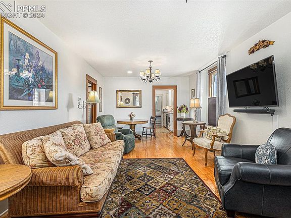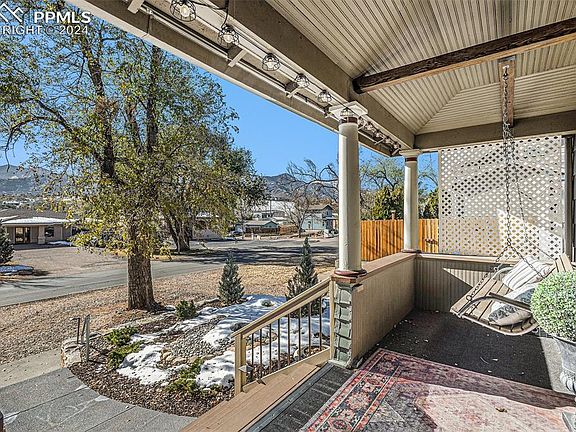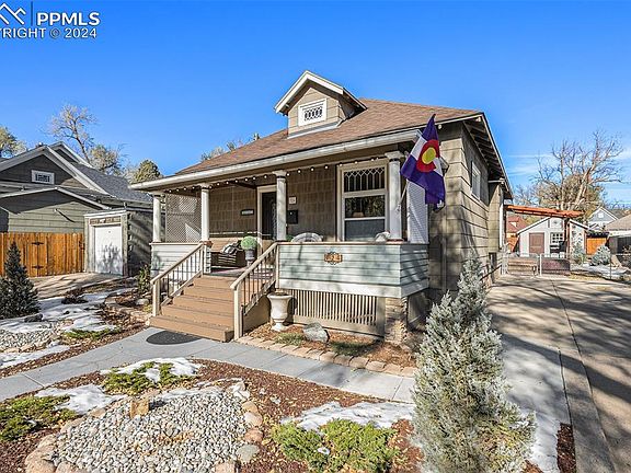 Welcome to this meticulously maintained bungalow nestled in the heart of historic Old Colorado City. Situated on a spacious lot with convenient alley access to a 1-car garage and unparalleled views of Pikes Peak off the front porch, this home is as charming as it gets. Inside, you'll be greeted by natural hardwood floors throughout, offering warmth and character to every room. The home offers easy main level living with 2 spacious bedrooms and a full bathroom. The kitchen is bright and open with an abundance of counter and cabinet space. The windows feature original stained-glass uppers, adding unique charm, while the main windows were replaced with new vinyl in 2022 for energy efficiency. The hot water heater and furnace were replaced in 2017. The front and back yards are both xeriscaped for low-maintenance living, allowing you to enjoy the outdoors without the hassle of heavy upkeep. Relax on the covered front porch with a swing, perfect for enjoying Colorado’s sunny days and cool evenings. Additionally there is a Man Cave/She Shed in the back yard with sink, mini fridge, microwave and compostable toilet - it is ready for you and your hobbies! Just down the street from Cucharras Park and within walking distance of local coffee shops, restaurants, and breweries, this home offers the perfect blend of peaceful neighborhood living and easy access to vibrant downtown activities. Whether you're exploring the nearby shops or just soaking in the atmosphere, you'll love the location and the cozy feel of this inviting home. This is a rare gem in Old Colorado City—don’t miss out!
