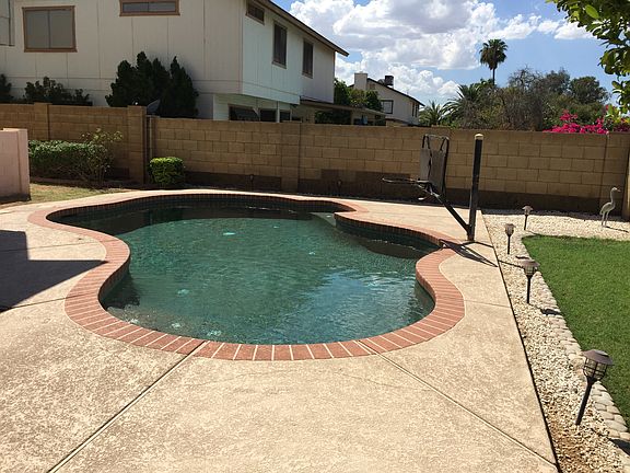 Take a look at this charming home in Mesa! Great neighborhood, No HOA, excellent schools nearby, this four bedroom also offers brick trim, a big lovely shade tree, front porch, two car garage. Spacious living room, formal dining. The great room has a brick fireplace, custom color palate. The eat in kitchen includes a breakfast room, granite counter top, custom cabinets, electric range with built in microwave, wet bar. Half bath for guests upgraded with granite and custom tile. You'll find a cozy loft upstairs. The guest rooms have access to a upgraded full bath with granite double sinks. The spacious master suite includes a upgraded 3/4 bath granite dual vanity and walk in custom tiled shower. Enjoy having your own gated swimming pool!! Don't wait, see it today!!