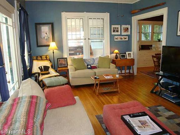 Charming Bungalow in West Salem! Open floor plan w/Hardwood floors, Built in Cabinets in LR & DR, Updated baths, Mstr BR w/sitting area/den, Great storage area above closets, Kitchen has new sink & newer appliances, original casement windows, Quaint Breakfast nook, Laundry Room just off Kit, Backyard has huge covered patio & great garden space, Off Street Parking, 5 minutes from WFBaptist Med Center, Community Park w/tennis courts, & quick trip for downtown dining! (Sunroom & Laundry not counted in sqft)