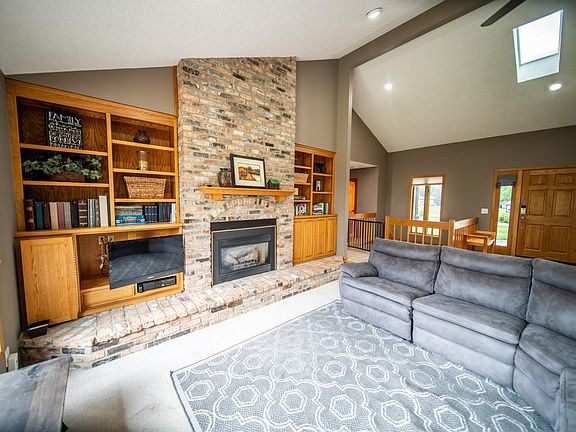 Enjoy incredible views of the Zumbro River and surrounding valley in this 4-bedroom, 3-bath walkout ranch home. The 4.81-acre property slopes down to nearly 500 feet of river footage. Wildlife abounds in this quiet country setting that is just minutes from Rochester. This home is ideal for entertaining or raising a family. The kitchen includes an in-wall double oven, granite countertops and stainless steel appliances. The dining room and breakfast nook lead to a large, new maintenance-free deck. The vaulted ceiling and large windows give the living room an open and spacious feel. On cold winter days, cozy up to the floor-to-ceiling brick fireplace. The main-floor primary bedroom includes an en suite bathroom with garden tub, glass-enclosed shower and 2 walk-in closets. A second bedroom (currently used as an office), full bath and laundry room also are on the main floor. The lower level features a family room with second fireplace and wet bar/kitchenette that opens to a large outdoor patio. The lower level also includes two more bedrooms, a full bathroom and a bonus room (currently used as a gym and office) with a sink and counter. The oversized 3-car garage is fully finished — insulated, heated and epoxy-sealed floors. And wait there's more. This home offers sustainable living with 58 solar panels and battery backup, as well as electric vehicle charging.