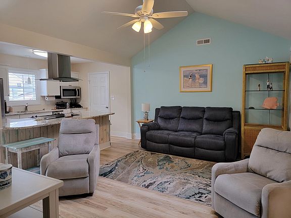 Well maintained 3 bedroom 2 bath home is beautifully furnished with a coastal vibe. Just bring your suitcase and enjoy living at the beach-which is just a golf cart away. So many features to consider: vinyl plank flooring and plantation shutters throughout home, granite counter tops, stainless steel appliances, washer/dryer stays, painted mural on dining room wall, and a screen porch you can access from the dining room and the master bedroom. Perfect for your primary or second home at the beach. All information and square footage is deemed accurate and is buyers responsibility to verify.