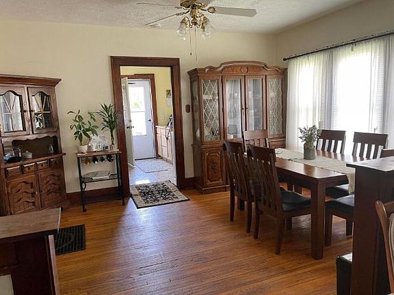 Charming home on a corner lot with large fenced in yard , hardwood floors natural woodwork, full basement, large backroom for extra living area New vinyl siding, metal roof. This is a real family home. Let me show you it to you today