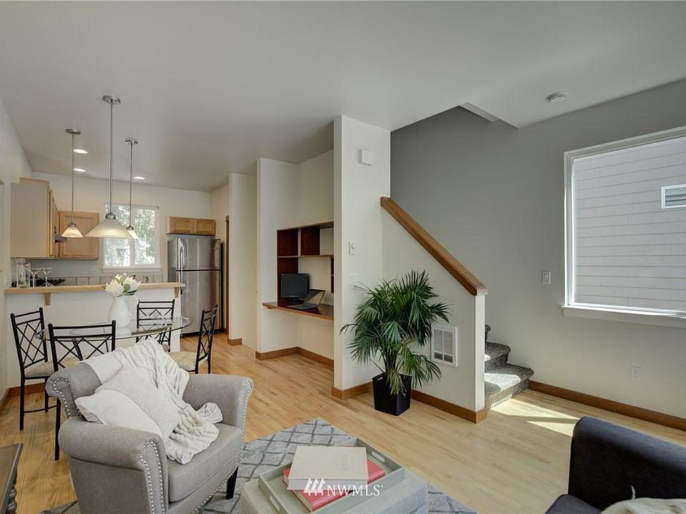 Cant beat this amazing location, or the value. Corner unit townhome tucked back in quiet neighborhood. Sunny, open floorplan with hardwood floors, newer Stainless-Steel appliances, spacious enclosed patio and attached garage. Walk and bike score of 80+. Short stroll to everything Greenlake has to offer trails, restaurants, parks, and more! Famous Licton Springs park only a block away. Easy access to I-5, Hwy 99, and future light rail. The best part No HOA dues!