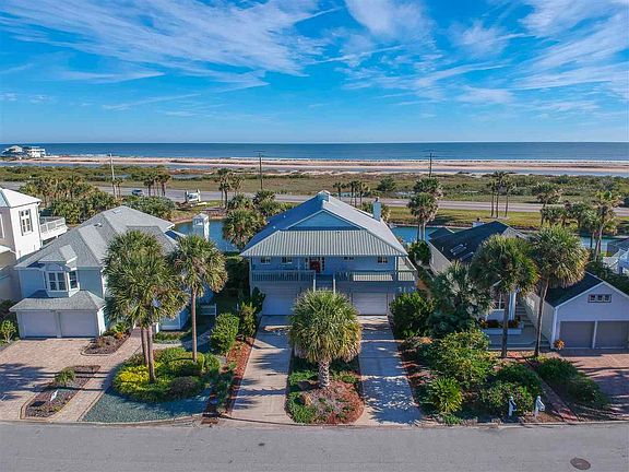 Oceanview Home with a 2,000 SF Garage - a rare find. Located in gated "Summer Island" Subdivision, this is the first time this home has been for sale! It was designed so that the entire 2,000 SF first floor is garage and the entire living area is elevated to take advantage of the panoramic ocean views. Vaulted Living Room features stunning Wood Floors, Custom Fireplace and the views are spectacular! Master BR is also on the ocean side. Community has a Dock and Boat Launch so you have ICW access Enjoy Old Florida Living in Summer Island - a community that takes advantage of it's great location along the Intracoastal Waterway overlooking miles of Park lands, it's very close proximity to Matanzas Inlet and Fort Matanzas State park and of course the beautiful Beaches just North of Marineland. This particular home is such a practical design since the entire ground floor is garage and the upstairs living area provides a high elevation with better views and privacy than any one-story home. There's always a breeze on the decks - fewer bugs. The garage has two 10' tall garage doors so you could bring in pickups, boats, small RV's, jet-skis or just fit a bunch of your collectible cars in here. There's even a 30 Amp breaker and two clean-out hookups on the side of the garage.