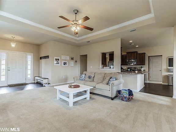 Beautiful, pristine 3/2, all brick Gold Fortified home(lowering insurance drastically) in Fairhope. Large great room has raised box ceiling w/lots of windows letting in all the light, 9' ceilings and recessed lighting, luxury wood plank vinyl in kitchen and breakfast area, stainless steel appliances, ample cabinets and counter space with a large breakfast bar, and a bright and airy breakfast room. Split bedrooms, big master bedroom with a trey ceiling, and best of all the master has a very large master bedroom closet, double vanities, shower in a nice size master bath. Front and back covered porches, subdivision has pond and fenced playground with picnic tables. Hurricane fabric protection, 30 year dimensional shingles and sidewalks in neighborhood.