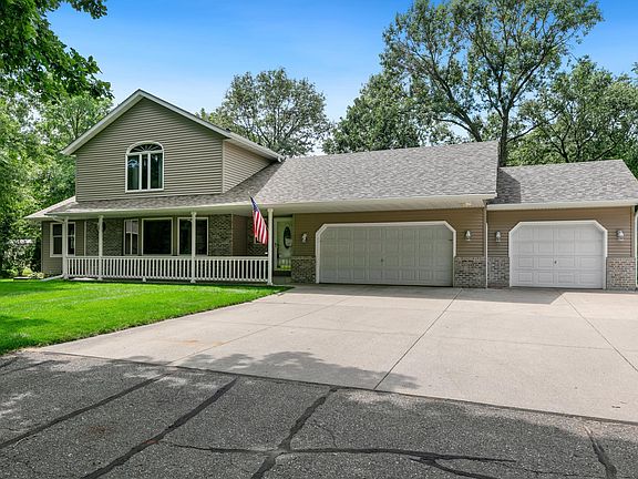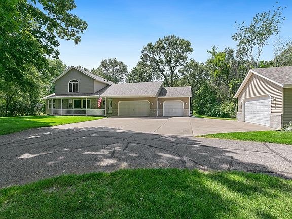 Welcome Home! This two story home has so much to offer. It is located in the Becker School District and close to Highway 10. Enjoy 2.49 acres with beautiful mature trees that offer privacy. A horseshoe driveway greets you and makes parking a breeze. The deck is the perfect spot for entertaining. The oversized three stall attached garage is heated/insulated and can be accessed from the main level or basement. The additional detached garage (24x26) is also insulated and heated so you have space for all of the toys. The home has a great amount of natural light. Three bedrooms on the same level to keep everyone close. The kitchen has granite countertops and lots of cabinet space. The 4 season porch will be the favorite hangout spot and will keep you warm with a natural gas fireplace. Private master suite with walk in closet and full bathroom with tile surround. BRAND NEW ROOF, SIDING AND GUTTERS. Basement is fully finished and has an additional bedroom and full bathroom. This is it!