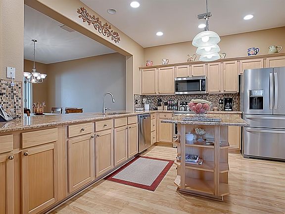Expanded Captiva 2/2 with a den is one you need to see. Enter this fine property through a leaded glass door entry way The home when built, was expanded to include a florida room under a separate A/C system, 21 x 23 which is great extra space. No carpet in this home, only tile and engineered wood floors. The kitchen has granite counters, tiled backsplash and wonderful stainless steel appliances, with a large eating area. Master bedroom has bay windows giving that extra room, also has French doors in Master bedroom, ensuite has a huge walk in closet, and redone with a granite vanity and tiled shower. Located in a cul de sac with lots of privacy. Rock beds, professionally landscaped and a whole lot more. Make plans to see it before it is gone.