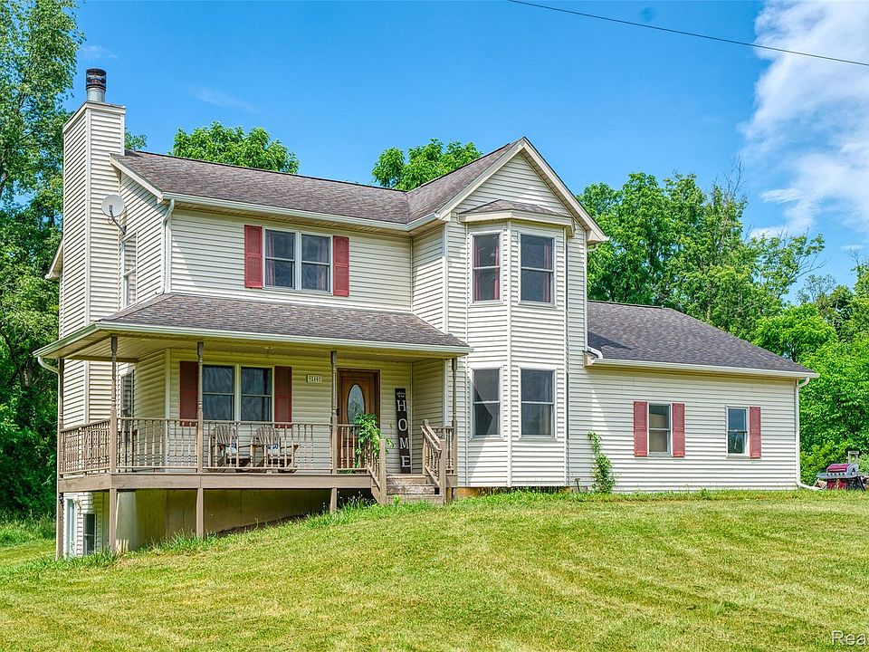 Two-story colonial situated on just over two peaceful acres in the country. The home offers over 1,700 square feet of comfortable living space with three bedrooms, two full baths, and two convenient half baths. The spacious great room features a cozy natural fireplace. Hardwood floors throughout the kitchen and dining area. Enjoy the outdoors from the large back deck or the inviting covered front porch-perfect for relaxing or entertaining. The partially finished walkout basement provides additional living and recreational space. All appliances are included, even the washer and dryer. The two-car attached garage offers plenty of storage space. A great blend of privacy, and functionality in a serene country setting.