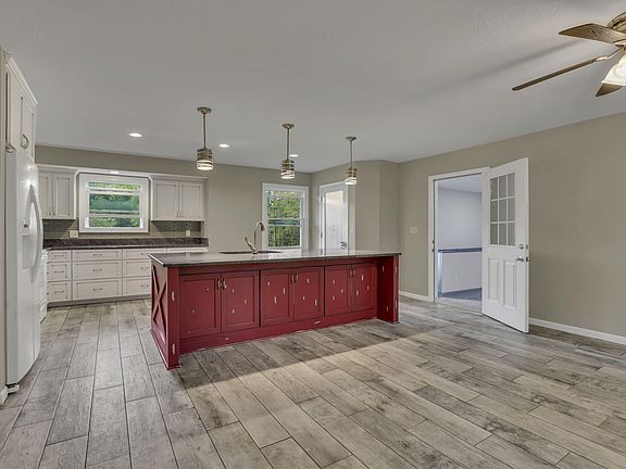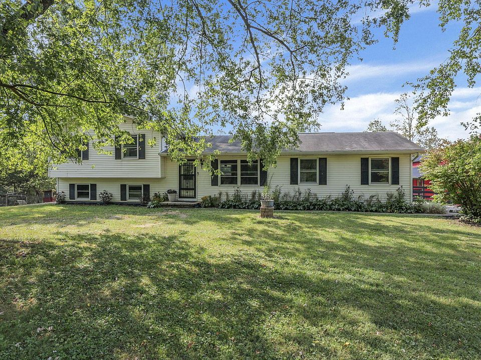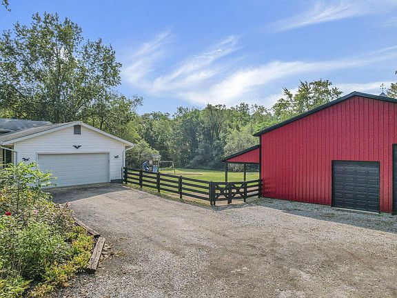 Spacious 4 bed, 2-bath split-level on 5 picturesque acres, offering the perfect blend of comfort and natural beauty. The open-concept kitchen/ living area features gleaming granite countertops, a central island w/sink, custom cabinetry, and walk-in pantry. Lower-level family room opens onto a patio, creating an ideal space for entertaining or relaxing. The versatile 4th bedroom can easily serve as a home office. The attached garage has been thoughtfully converted into a step-down family room with its own exterior access, yet could be effortlessly restored to a garage if desired. Recent upgrades include updated electric, LVP flooring, furnace heating element, paint, and more. Outside, enjoy a tranquil, partially wooded landscape with winding walking trails, a creek. The pole barn adds even more appeal, complete with a porch, electric, water, & partial insulation. Ready for animals, storage, hobbies, or workspace. This property truly offers a rare combination of indoor comfort and outdoor retreat.