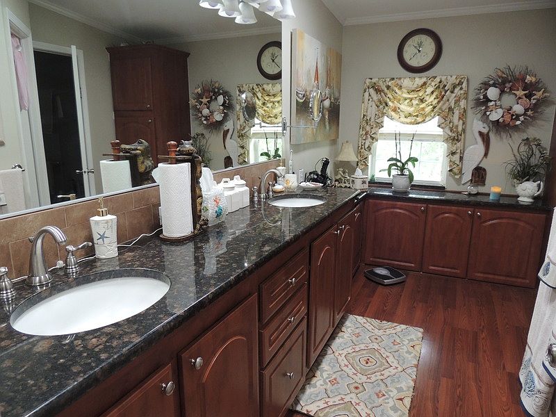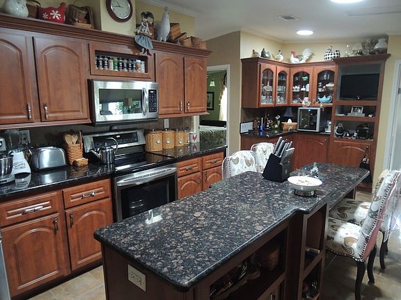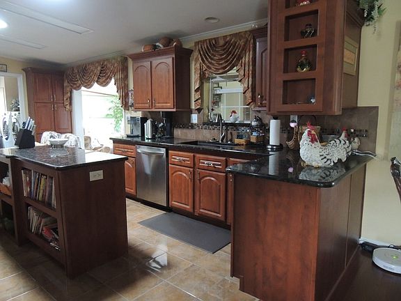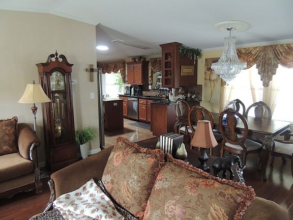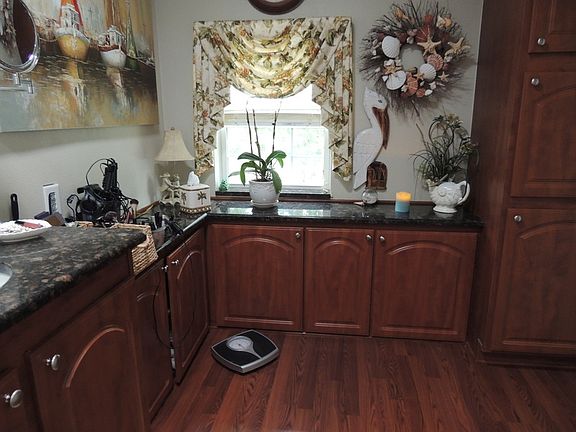 2005 PALM HARBOR 3 BEDROOM 2 BATH HOME WITH 1864 SQUARE FEET. AMAZING KITCHEN WITH UPGRADED CABINETS, GRANITE COUNTER TOPS AND A KITCHEN ISLAND WITH RECIPE BOOK SHELVES FOR THE COOK IN THE FAMILY. STAINLESS STEAL APPLIANCES AND TILED BACK SPLASH. BOTH BATHS HAVE GRANITE COUNTERS . DINNING/LIVING ROOM COMBO GIVES THIS HOME A SPACIOUS FEELING. WOOD LAMINATE FLOORING THROUGHOUT, PORCELAIN TILE IN WET AREAS. MASTER HAS DUAL SINKS AND TONS OF COUNTER SPACE AND CABINETS. LAUNDRY ROOM SEPARATE WITH WALK-IN PANTRY STORAGE. .16 X 20 LANAI IS COUNTED IN SQUARE FOOTAGE AS IS AN ATTACHED ROOM. DOUBLE PANED WINDOWS THROUGHOUT. WINDOW TREATMENTS DESIGNED TO HELP CONTROL TEMPERATURE. BACK PATIO IS GREAT FOR ENTERTAINING. FINISHED CONCRETE, TEXTURED FLOORS AS WELL AS DRIVEWAY. WATER SOFTENER INSTALLED. AWESOME VIEW OF THE POND AND WOODED AREA. IF YOU'VE BEEN WAITING FOR THE PERFECT HOUSE THIS IS IT! COMES UNFURNISHED AND GOLF CART IS NEGOTIABLE.